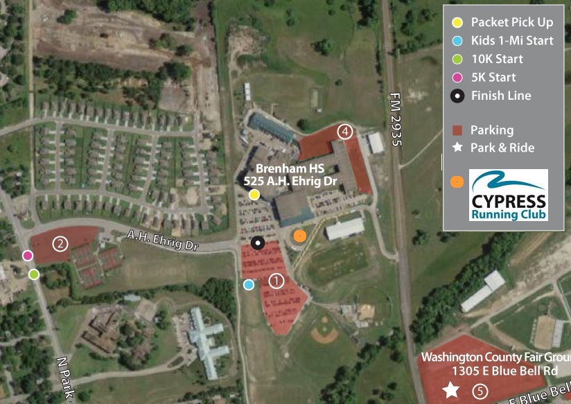 While it may not be the most organized race around, all the free ice cream offered afterwards certainly help Blue Bell Fun Run keep its reputation as one of the most fun and family-friendly races. Our Cypress Running Club kids will be earning their post-race treat after a 1 mile fun run, and plenty of club members will be tackling the hills of Brenham in the 5k and 10k distances. We will plan to have a CLUB PHOTO AT THE TENT AT 7:45 SHARP! We have a great tent location right near packet pick up and the finish line. Immediately after the photo we’ll escort the kiddos down to the field for the 1 Mile start at 8:00, and this also leaves plenty of time for others to cheer on the kiddos before making their way up the hill to the 5k and 10k start.